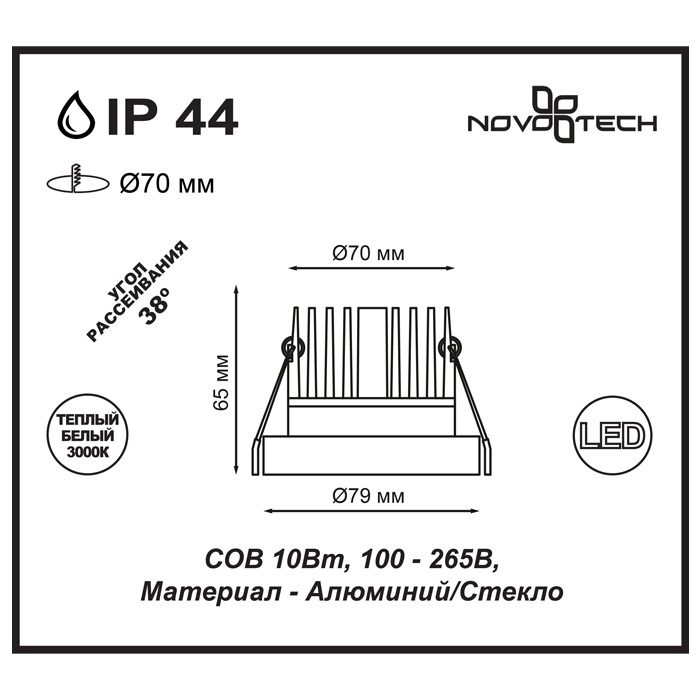 Диаметр врезного отверстия, мм70