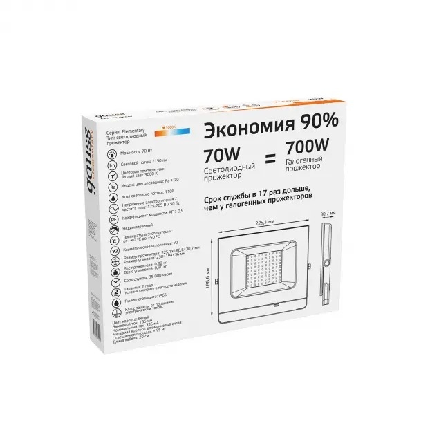 Мощность лампы, W70
